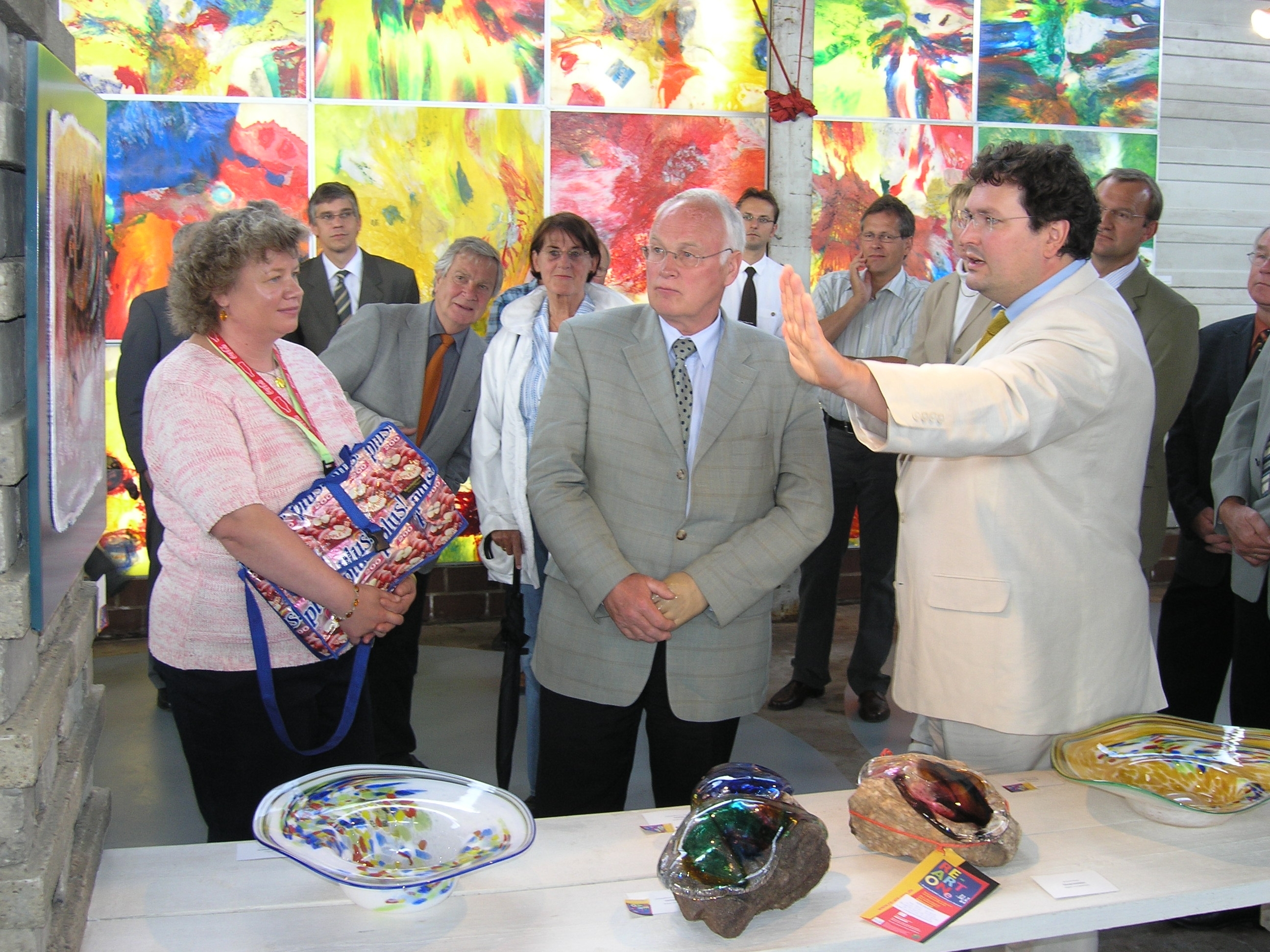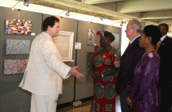 Kurator Samuel J. Fleiner mit Waangari Matthai, Klaus Töpfer und