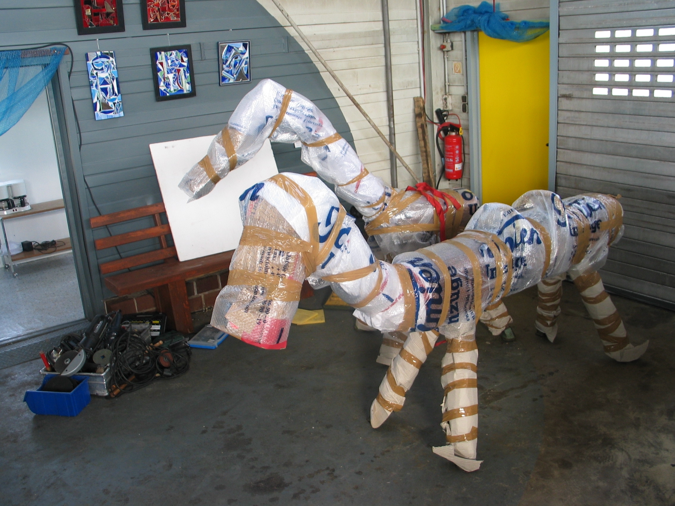 Zwei verpackte Objekte von Mitsch Thomas vor ihrem Abtransport